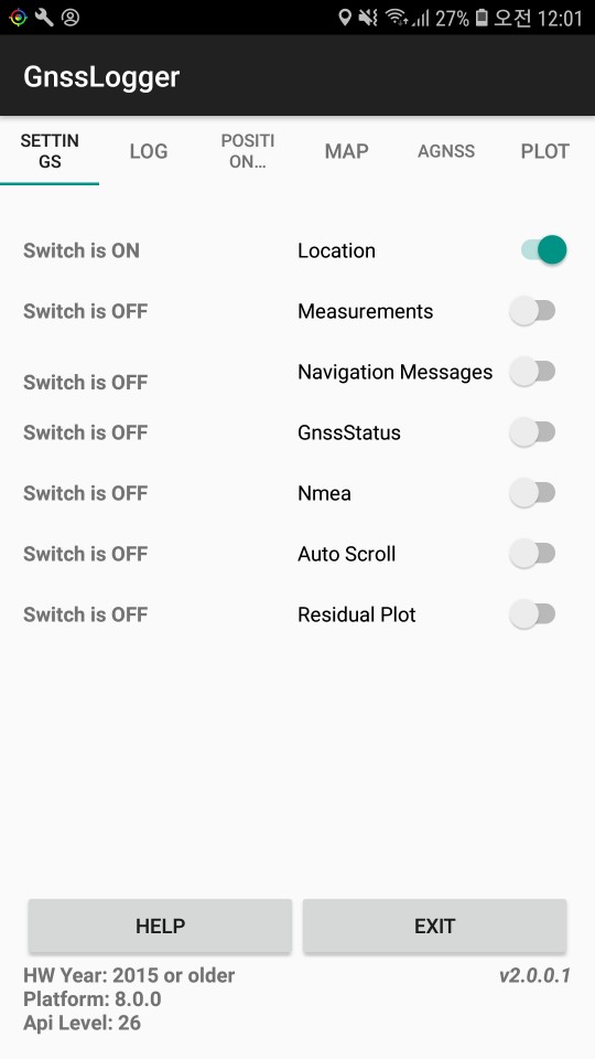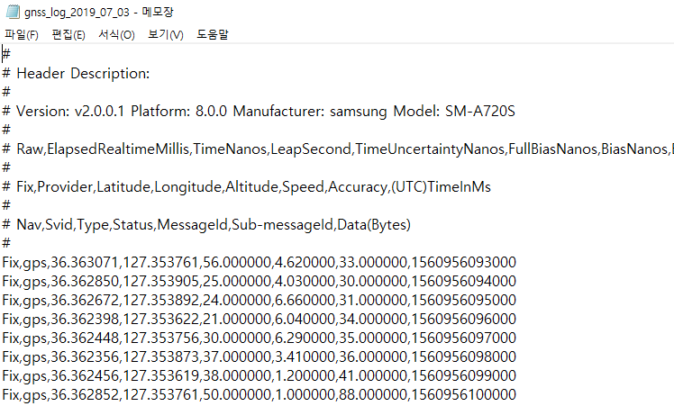 I used the ‘GNSS Logger’ application to use the GPS sensor in my smartphone. GNSS Logger app is made by Google. And I used the Galaxy A7 model, and the application was downloaded from the google developer site.