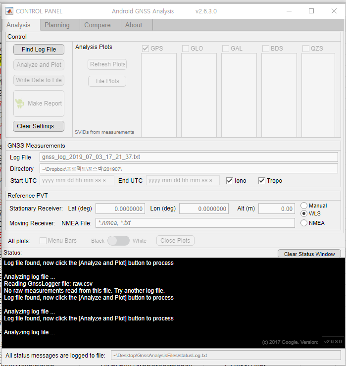 It shows the saved text log file to the computer and execute the program. When you insert a log file into a program, it automatically analyzes the data in the log file. It should be output as a graph, but now there is still a problem with the file or program. This seems to require some troubleshooting.