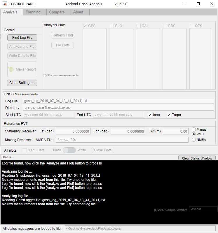 -Before starting, you have to check the GNSS(GPS) of your smart phone. If your phone can not get raw data, you can not proceed to analysis.