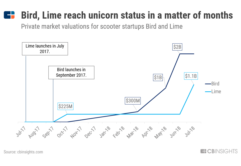 - ^ Zaleski, Olivia (May 29, 2018). “Bird Races to Become the First Scooter Unicorn”. Bloomberg.com. Retrieved 2018-06-03.