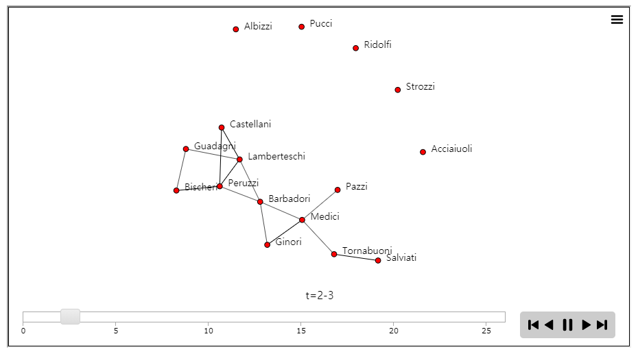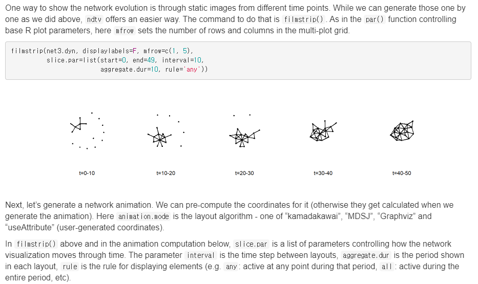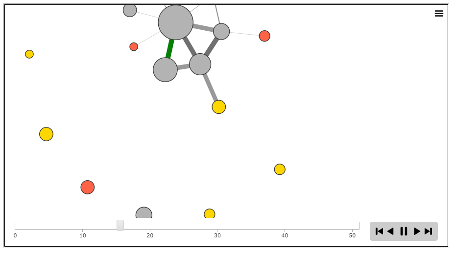 I am looking for ways to visualize a network that changes over time. First, They created a slide bar through R programming to see how the network changed over time.