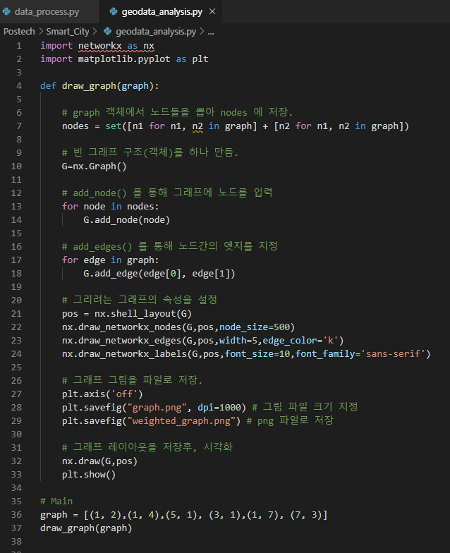 I studied how to draw a simple network using the libraries provided by python, Networkx and Pyplot.