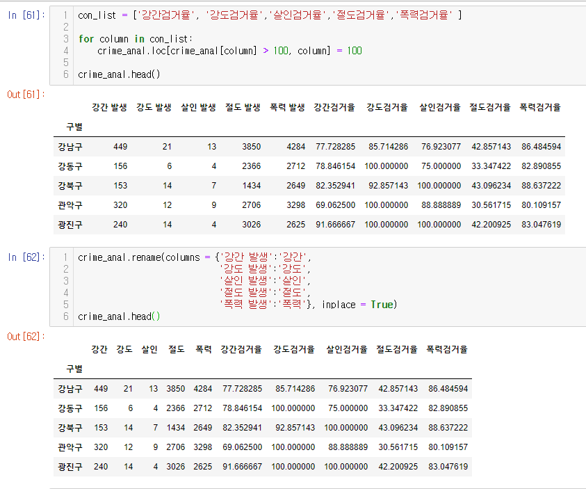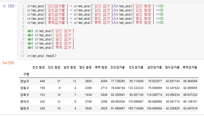 This is a python example that analyzes the relationship between CCTV distribution and crime rate.