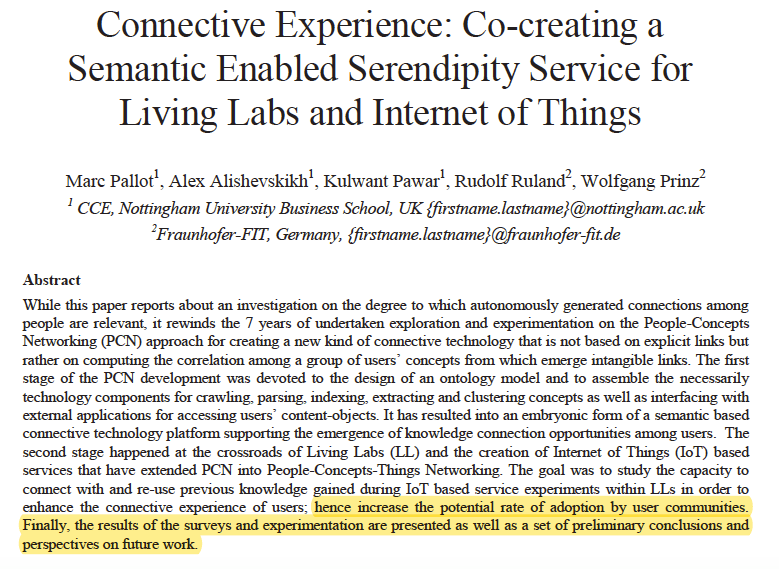 Connective Experience: Co-creating a Semantic Enabled Serendipity Service for Living Labs and Internet of Things