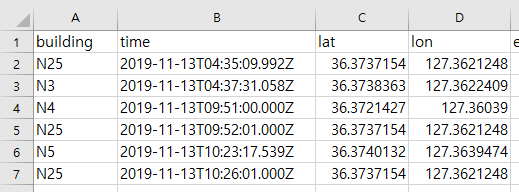 Building No / Time / lat / lon