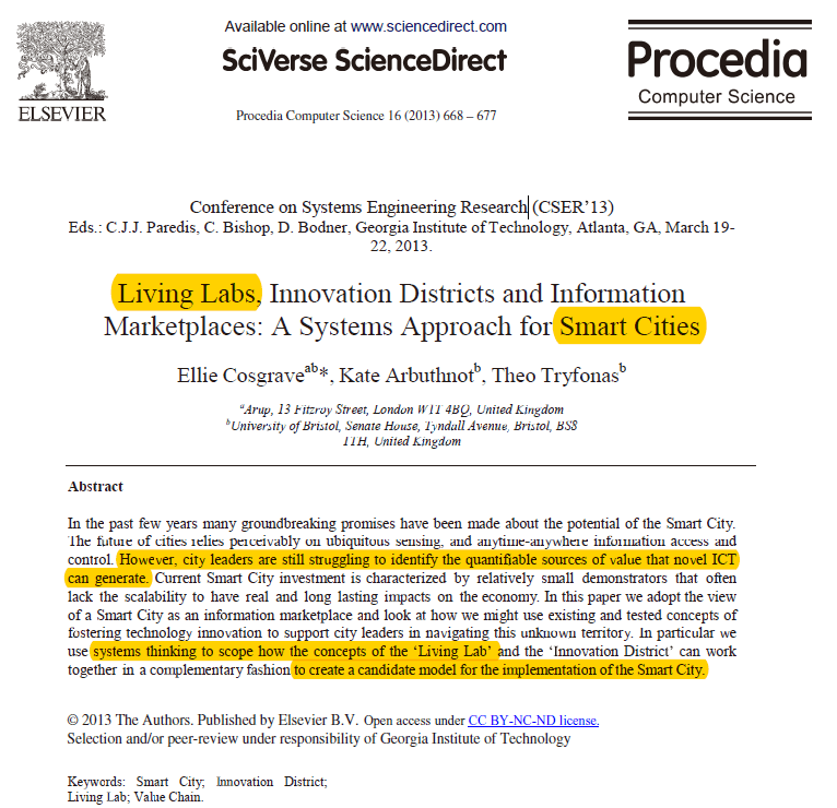I am interested in living lab in smart city. So I found a conference paper on Living lab from UK.